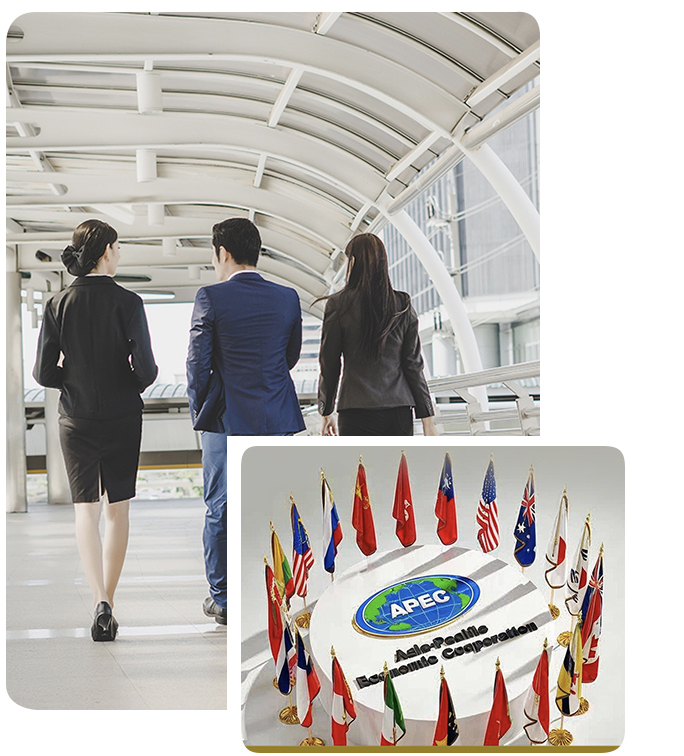 Funciona como visa de negocios en 19 de los 21 países miembros de la APEC (excepto en EEUU y Canadá).